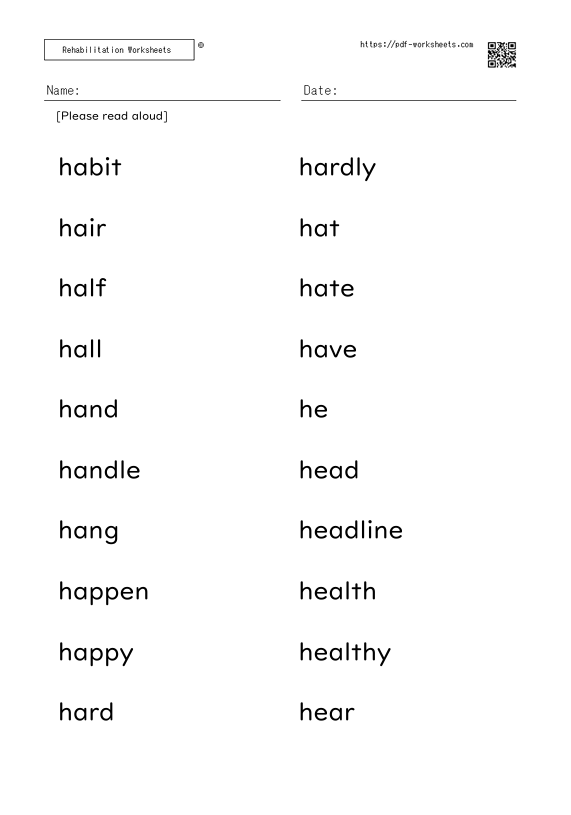 Articulation Exercises WorksheetsWord reading aloud task “H” (5 sheets) Word reading aloud task “H” (5 sheets) 2025.10.20Articulation Exercises Worksheets
