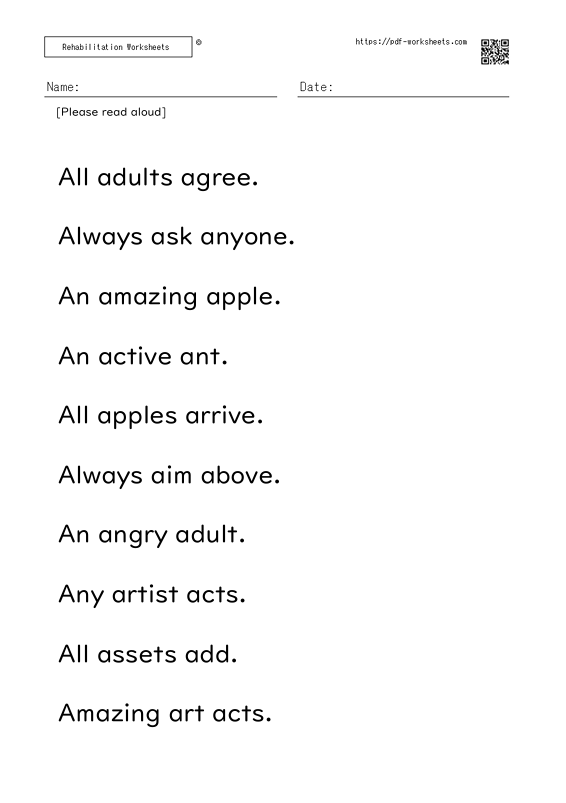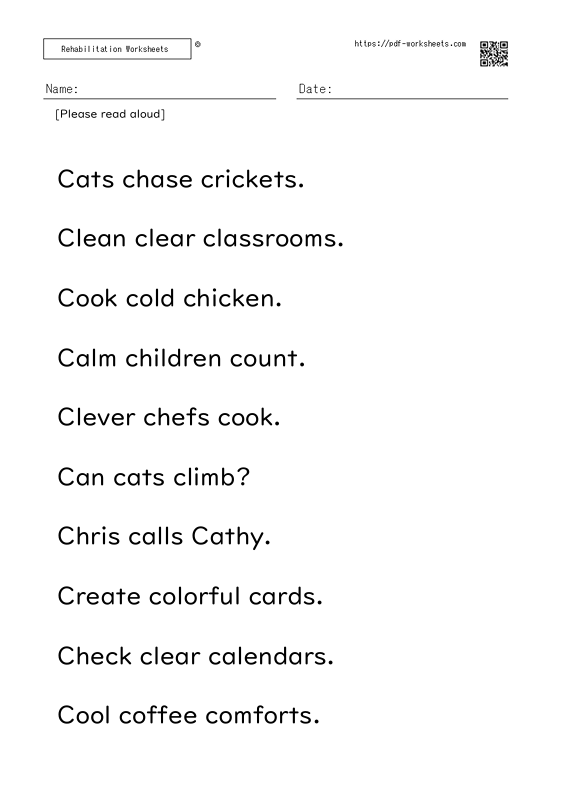Articulation Exercises WorksheetsReading aloudReading aloud task three-word sentence B (10 sheets) Articulation Exercises Worksheets X Facebook Pinterest LinkedIn Copy 2026.04.13Reading aloud task three-word sentence B (10 sheets) To download all worksheets, you need to register as a premium member.→About Premium Membership ←
